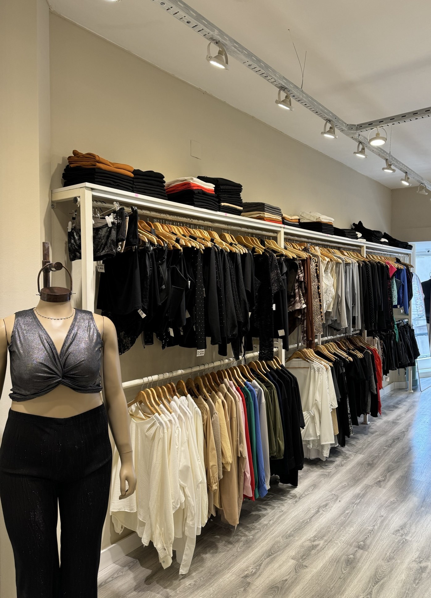 Se modificaron los probadores, optimizando su funcionalidad y estética, y se instaló un nuevo revestimiento en el piso, mejorando tanto la durabilidad como la percepción del lugar. Los exhibidores de ropa existentes fueron reutilizados, pero se les incorporó un estante superior, permitiendo una mayor capacidad de almacenamiento para stock adicional.