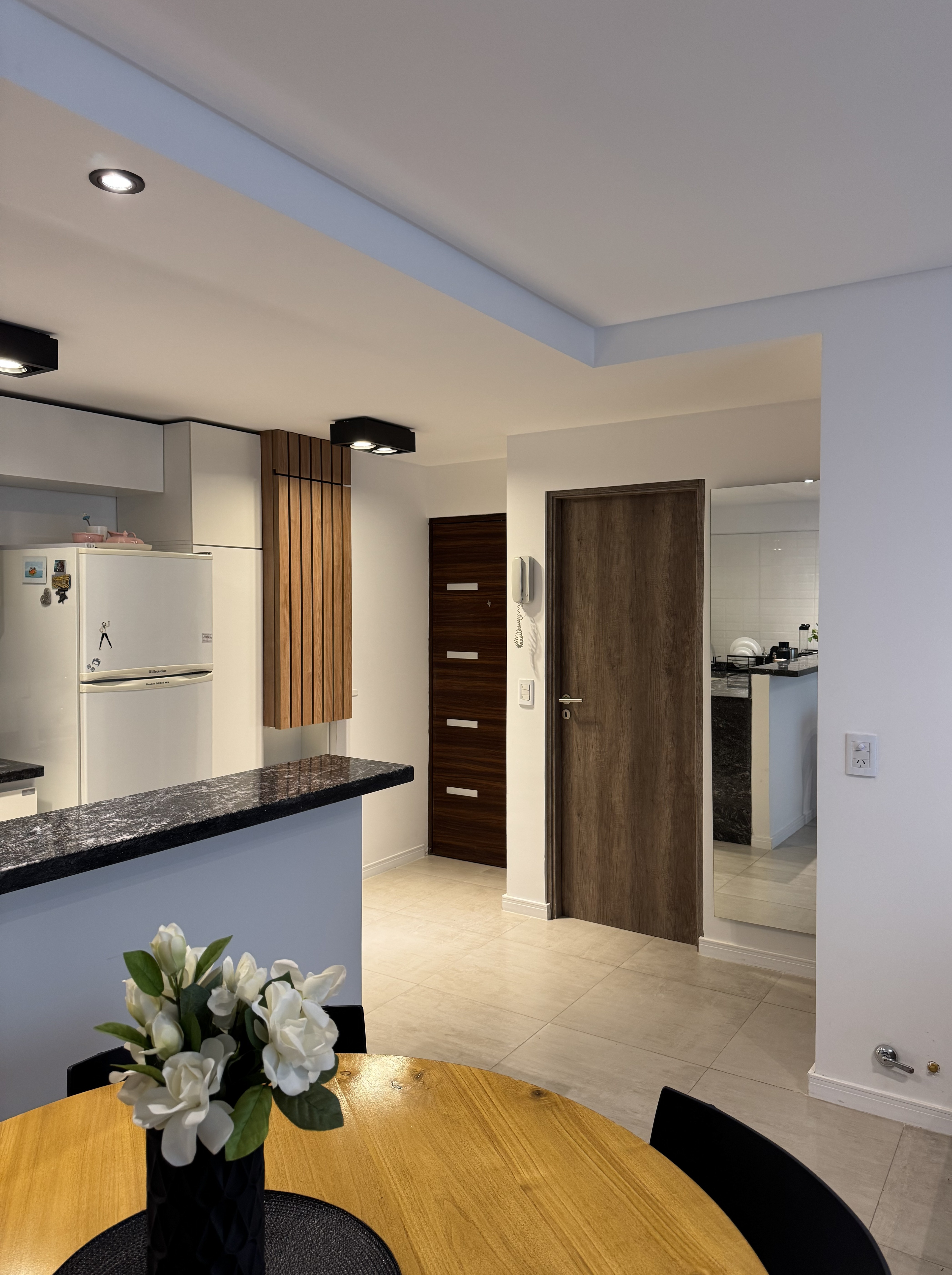 Finalmente, diseñamos cubre-aires a medida con varillas de PVC para exterior y estructura de hierro, integrándolos de manera armoniosa al diseño general del departamento.
